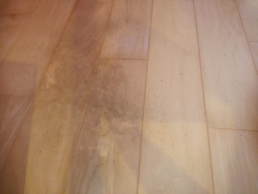 1. フローリングの継ぎ目から内部に浸透し、黒ずんでしまった